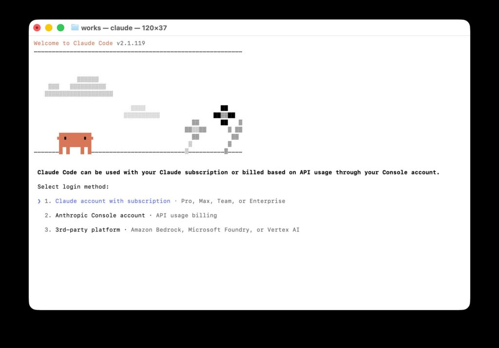 サブスクリプション利用なら Claude account with subscription、API キー利用なら Anthropic Console account を選択します。