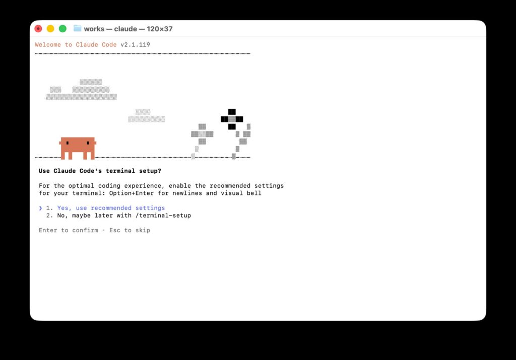 Option+Enter での改行や Visual Bell が有効になる推奨設定です。Yes, use recommended settings を選択します。